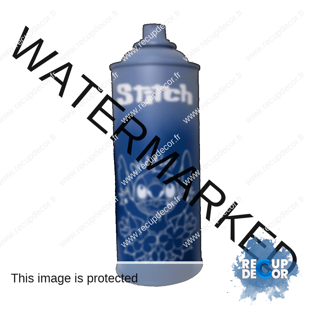 Voici une bombe de peinture customisée “Stitch”.